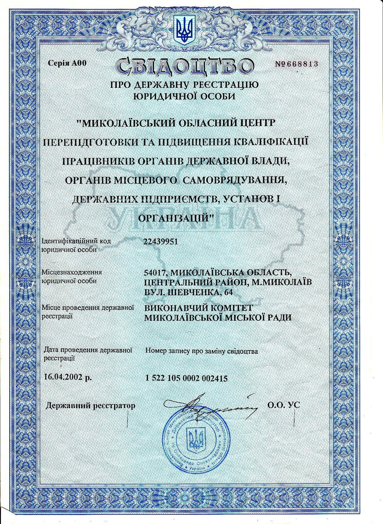 10 липня 1992 року розпорядженням Представника Президента України в Миколаївській області створено Миколаївський обласний центр перепідготовки та підвищення кваліфікації працівників органів державної влади, органів місцевого самоврядування, державних підприємств, установ і організацій (далі – Центр).