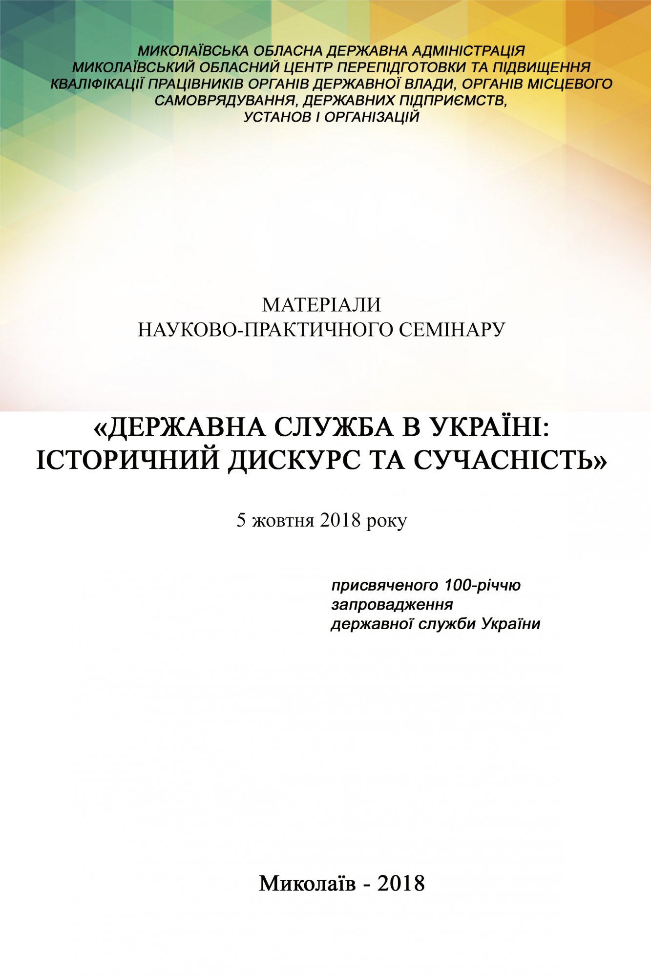 Збірник присвячено вивченню та аналізу сучасних практик публічного управління та адміністрування в Україні в першій рік після відзначення сторіччя від дня запровадження державної служби. Також у статтях науковців і управлінців-практиків приділено увагу професійній освіті й підвищенню кваліфікації персоналу органів публічної влади в Україні на сучасному етапі.